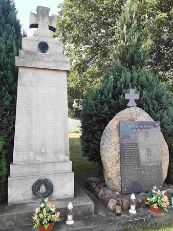 Daneben das nach 1990 errichtete Denkmal für die Kriegsopfer des 2. Weltkriegs, ein Findling mit davor