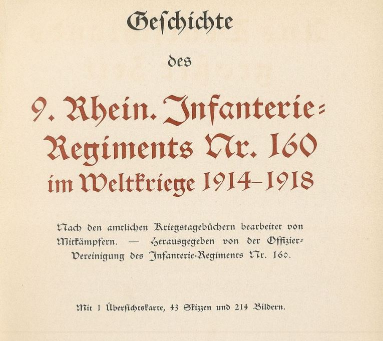 Geschichte des 9. Rheinisches Infanterie-Regiments Nr. 160 im Weltkriege 1914-1918, Aus Deutschlands großer Zeit, Band 42, 1932