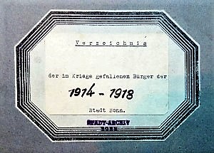 Kladde= Liste der Gefallenen des I. Weltkrieges aus Bonn (Stadtarchiv Bonn)
