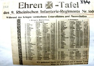 Zt.= Deutsche Reichszeitung (verlegt in Bonn), darin Ehrentafel des Infanterie-Regiments 160