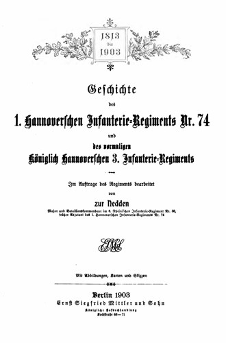 Geschichte des 1. Hannoverschen Infanterie=Regiments Nr. 74 und des vormaligen Königlich Hannoverschen 3. Infanterie=Regiments. 1813 bis 1903.