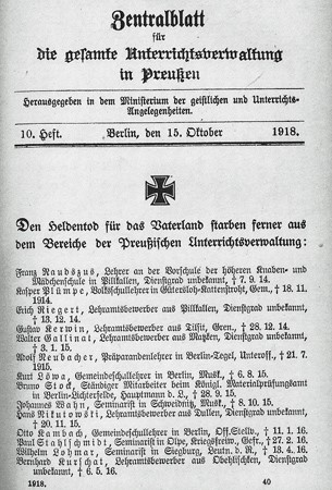 Den Heldentod für das Vaterland starben aus dem Bereich der Preußischen Unterrichtsverwaltung: