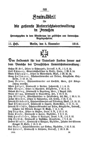 Den Heldentod für das Vaterland starben aus dem Bereich der Preußischen Unterrichtsverwaltung: