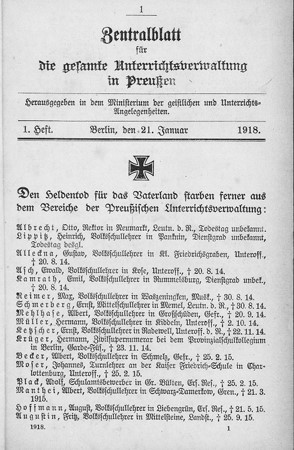Den Heldentod für das Vaterland starben aus dem Bereich der Preußischen Unterrichtsverwaltung: