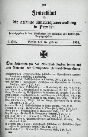 Den Heldentod für das Vaterland starben aus dem Bereich der Preußischen Unterrichtsverwaltung:
