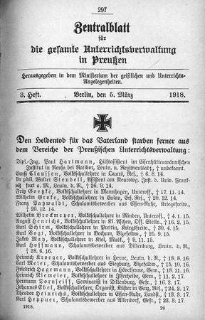 Den Heldentod für das Vaterland starben aus dem Bereich der Preußischen Unterrichtsverwaltung: