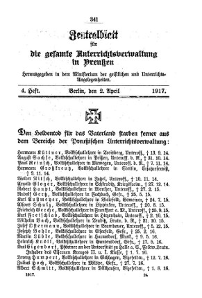 Den Heldentod für das Vaterland starben aus dem Bereich der Preußischen Unterrichtsverwaltung:
