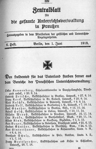 Den Heldentod für das Vaterland starben aus dem Bereich der Preußischen Unterrichtsverwaltung: