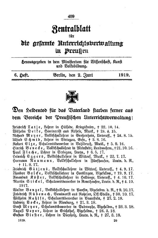 Den Heldentod für das Vaterland starben aus dem Bereich der Preußischen Unterrichtsverwaltung: