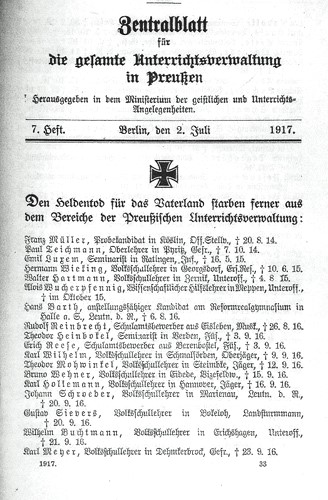 Den Heldentod für das Vaterland starben aus dem Bereich der Preußischen Unterrichtsverwaltung: