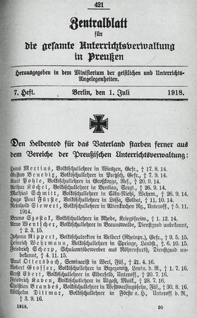 Den Heldentod für das Vaterland starben aus dem Bereich der Preußischen Unterrichtsverwaltung: