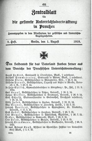 Den Heldentod für das Vaterland starben aus dem Bereich der Preußischen Unterrichtsverwaltung: