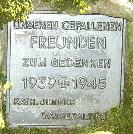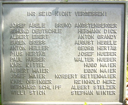 Das „Bildstöckle“ auf dem Braunenberg: Mehrere gemauerte Steinblöcke, ein Steinblock mit Tafel und den Namen des Zweiten Weltkriegs.