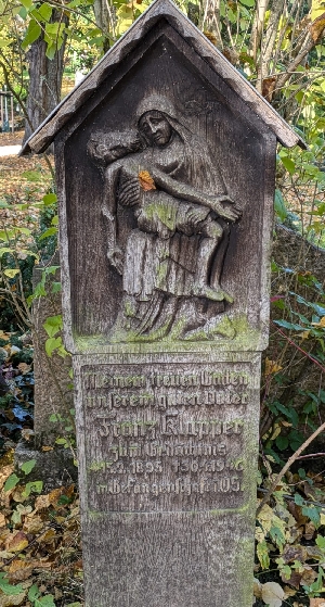 Zum Gedächtnis an unseren innigst geliebter Sohn und Bruder dem Kapellmeister (Name) Freiwilliger, Träger d. Eis. Kr. II. Kl. Er starb den Heldentod für sein Vaterland. Und ruht auf dem Friedhof in Lille. |