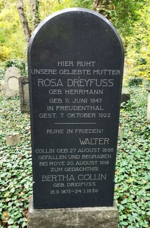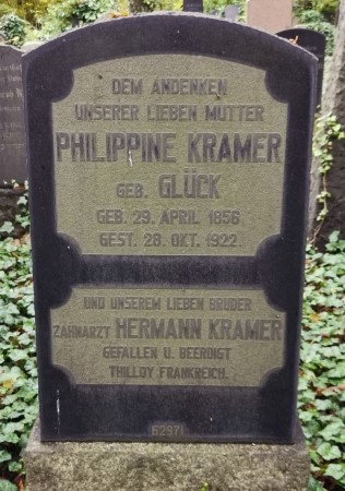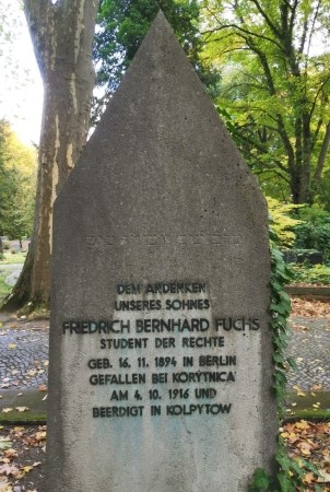 Grabstelle von Samuel Siegmann (1837-1916) und Hedwig Siegmann, geb. Aschkinass (1838-1900): Zugleich dem Andenken unseres in Frankreichs Erde ruhenden lieben Bruders … Er starb den Heldentod fürs Vaterland. Kriegsgräberstätte Consenvoye, Block 1 Grab 1612 |