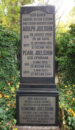 Im treuen Gedenken meiner unvergesslichen Söhne und unserer geliebten Brüder… gefallen im Westen fürs Vaterland und daselbst beerdigt; Sohn von Isidor Bloch (1860-1916) und Johanna Bloch, geb. Finkelstein (1852-1922) |