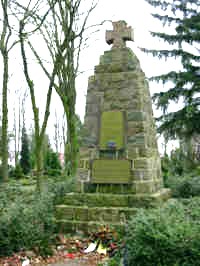 Ein Ehrenmal für die Kriegstoten des Ersten Weltkrieges (ohne Namen) findet sich am nordwestlichen Rand des Friedhofes. Ein gestufter stumpfer Obelisk