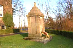 Ein schlichtes Sandstein-Monument auf einem mehrstufigen Sandsteinsockel (1870/71).