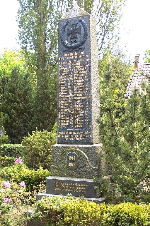 Ein Obelisk für Gefallene des Ersten Weltkriegs auf dem Wustrower Friedhof.