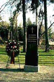 Zweiter Weltkrieg: Schwarze Marmorstele (poliert) auf einem grauen Marmorsockel (unpoliert) mit goldfarbener Inschrift.