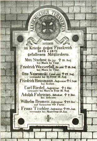Gedenktafel in der Turnballe des Akademischen Turnvereins zu Berlin (verschollen).