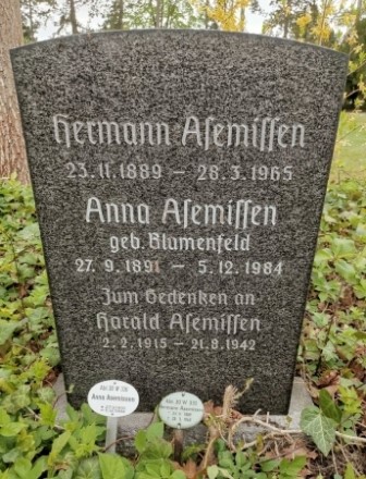 Zum Gedenken an; Kaufmann; vermisst; Sohn von Hermann Asemissen (1889-1965) und Anna Asemissen, geb. Blumenfeld (1891-1984 |