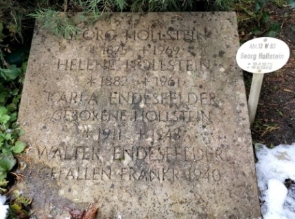 Pfarrer und Schriftleiter; Ehemann von Karla Endesfelder, geb. Hollstein (1911-1943); Kriegsgräberstätte Andilly: Block 8 Reihe 4 Grab 244 |