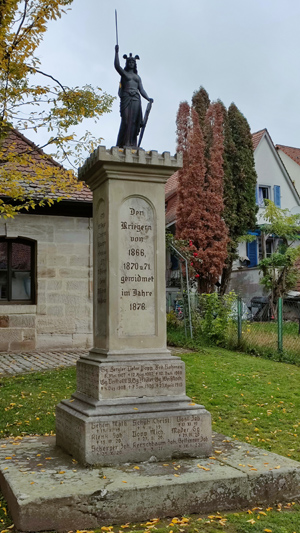 Denkmäler für 1866 und 1870/71 sowie den 1. Weltkrieg vor der Kirche.