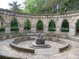 In der Mitte des Innenraumes ruht der Kopf eines Soldaten auf einem Helm.Die Grundsteinlegung im Wittringer Wald (Stadtwald) erfolgte 1933, die Einweihung am 17.6.1934.