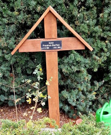 | Soldat Obergefreiter | STEFFAN | Friedrich Georg Walter | 01.02.1923 Albertinenhof, Kreis Saatzig | 28.04.1945 bei Gräben / PM | FRIEDRICH Steffen |