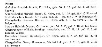 | Obgefr | HONEMANN | Georg | 02.09.1915 Schafwinkel | 03.09.1942 am Ilmensee |