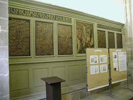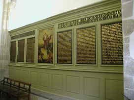 12 Namenstafeln für die Gefallenen des Ersten Weltkriegs im Eingangsbereich der Stadt- und Pfarrkirche St. Marien.