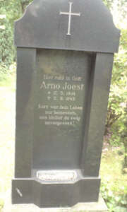 Familiengrab; „Hier ruht in Gott unser einziger, geliebter Sohn - cand. phil., Inh. d. Eisernen Kreuzes, am 10.11.1916 schwer verwundet vor Le Sars (Frankreich); Erhaben und ehrenvoll ist es, für das Vaterland zu sterben“ |