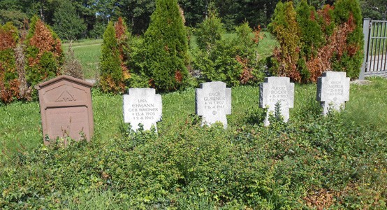 Auf dem Friedhof Gedenkstein 1870 und Kriegsgräber von 1945.