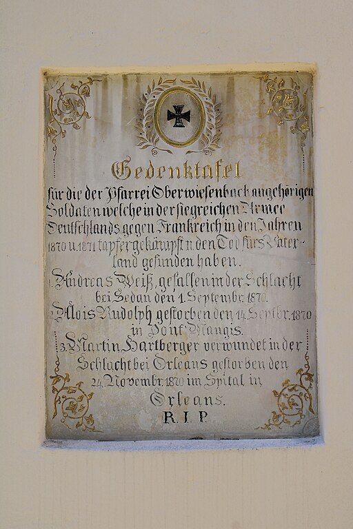 In der St. Blasius-Kirche des Ortes hängt zur Erinnerung an die Opfer des Deutsch-Französischen Krieges,