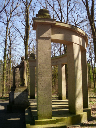 Vor dem halbrunden Bau mit acht Pfeilern, steht eine 2,5 Meter hohe Roland-Statue.