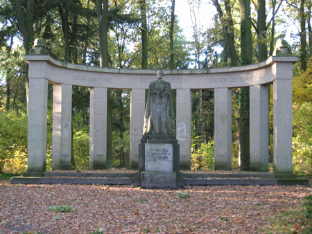 Das Denkmal auf dem Friedrich-Engels-Platz, auf Höhe des Friedhofs, erinnert heute an beide Weltkriege.