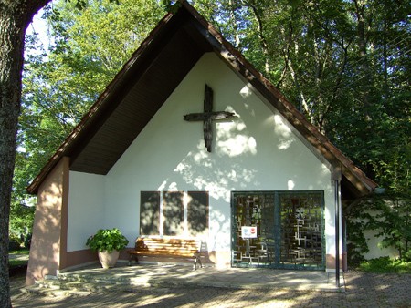 Neben dem Eingang in die Aussegnungshalle des Friedhofs drei Tafeln mit den Namen beider Weltkriege.