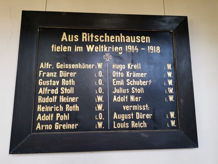 Foto © 2024 (Kirche) Wikimedia: Wikitarisch, Category:Kriegerdenkmale_Kirche_Ritschenhausen, CC BY-SA 4.0 (Fotos verkleinert)