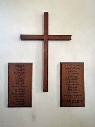 Gedenktafeln für den Feldzug 1870/71 und beide Weltkriege in der nahegelegenen Kirche.