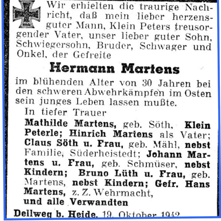 | Gefreiter | MARTENS | Hermann | 01.06.1912 Dellweg |