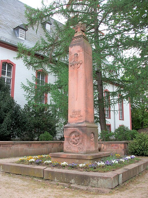 An drei Seiten die Namen der Gefallenen und ihr Sterbedatum, gruppiert nach ihrem Heimatort.