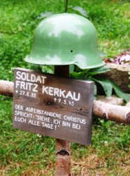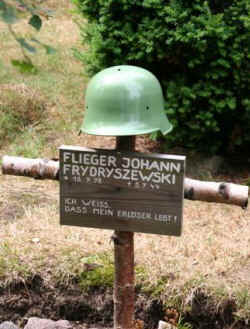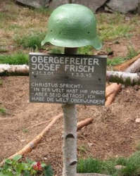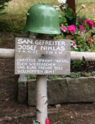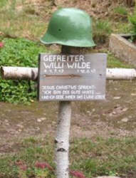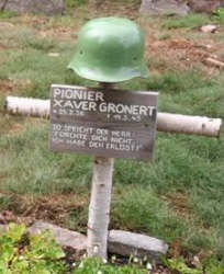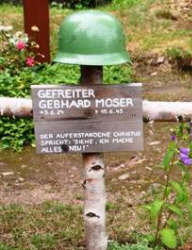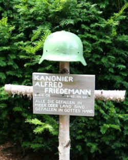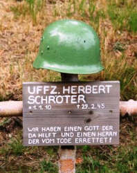 Einzelgräber mit org. Stahlhelm der Gefallenen.