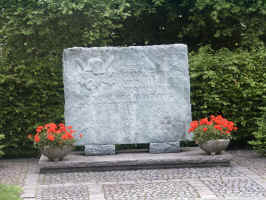 Hautstraße vor der Ortskirche. In der Aussegnungshalle des Kirchhofes zwei