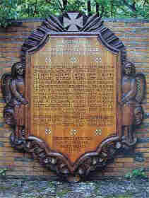 Holztafeln an der Aussegungshalle auf dem Friedhof.
