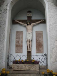 Kreuz und 4 Gedenktafeln, im Ort