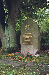 Hamburg-Blankenese:1848 (Erhebung Schleswig-Holsteins) In der Blankeneser Bahnhofstraße / Ecke Mühlenberger Weg in einer kleinen Grünanlage Denkmal für die Erhebung Schleswig-Holsteins. Ein Granitfindling mit geschliffener Fläche, darauf die Inschrift und 8 Namen. Inschriften:
