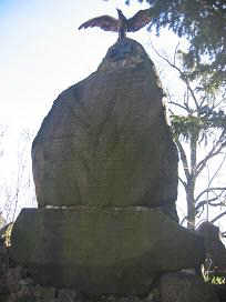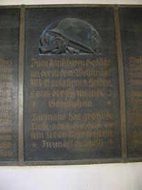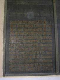 Denkmal kaum noch zu entziffern. In der Kirche sind 3 Holztafeln