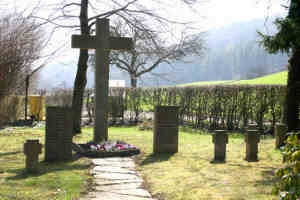 Steinkreuze und 2 Gedenktafeln. Zusätzlich Hinweise zu Soldaten von privaten Gedenksteinen.