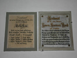 Lindwurm" (WK1), zwei kleinere Marmortafeln links vom Eingang
